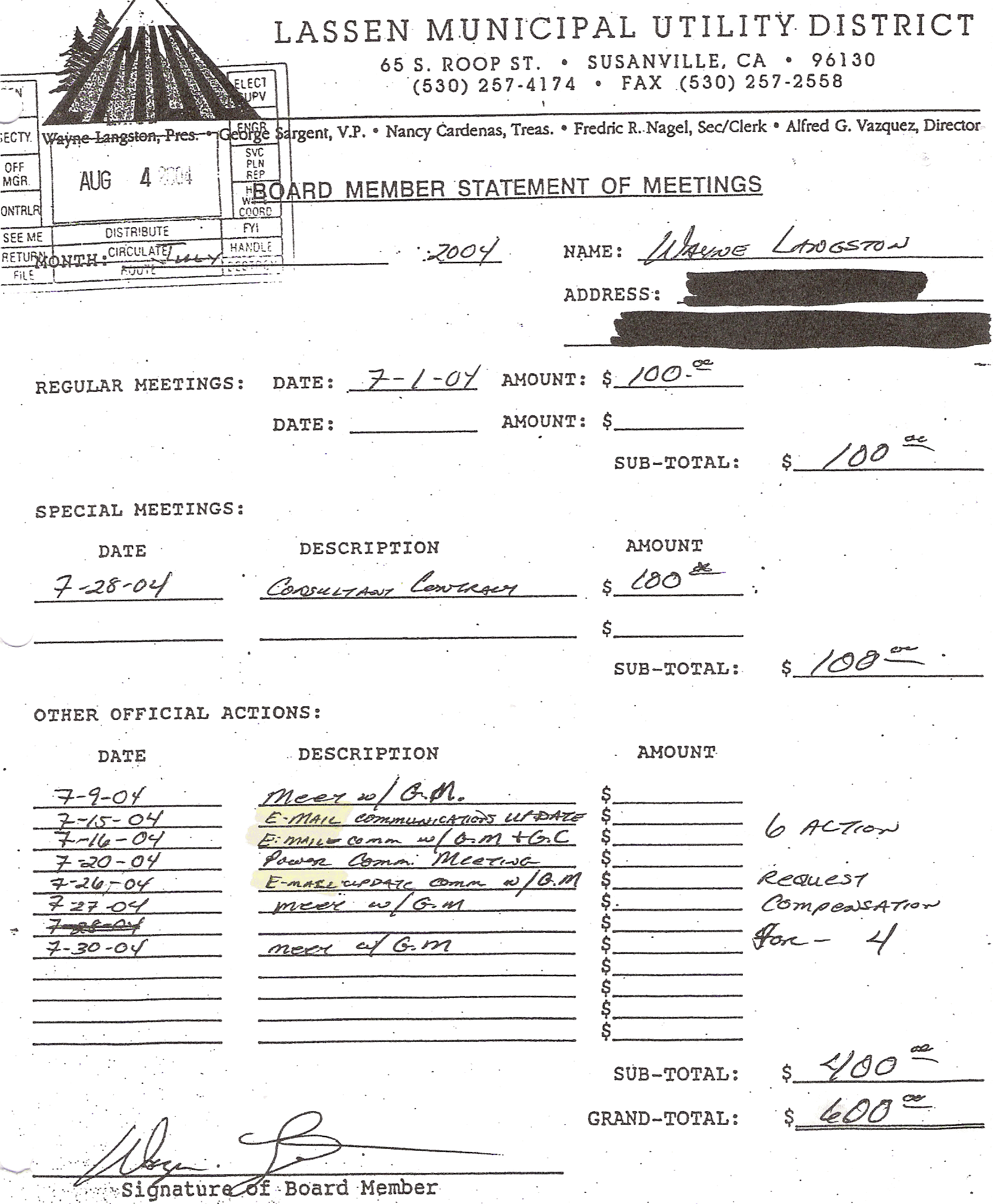 Langston e-mails 7/15/04, 7/16/04, 7/26/04