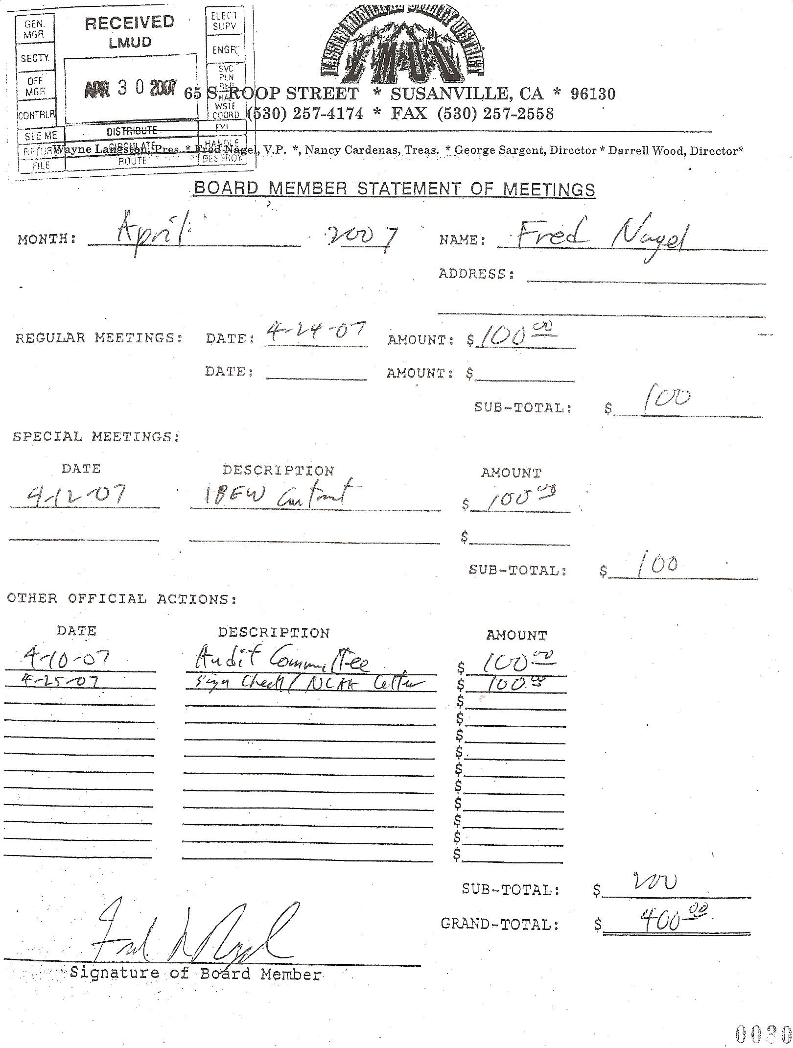 Darrell Woods claimed he met with Wayne Langston on 4/24/07, 4/25/07 & 4/29/07. Wayne Langston's statement does not support this.