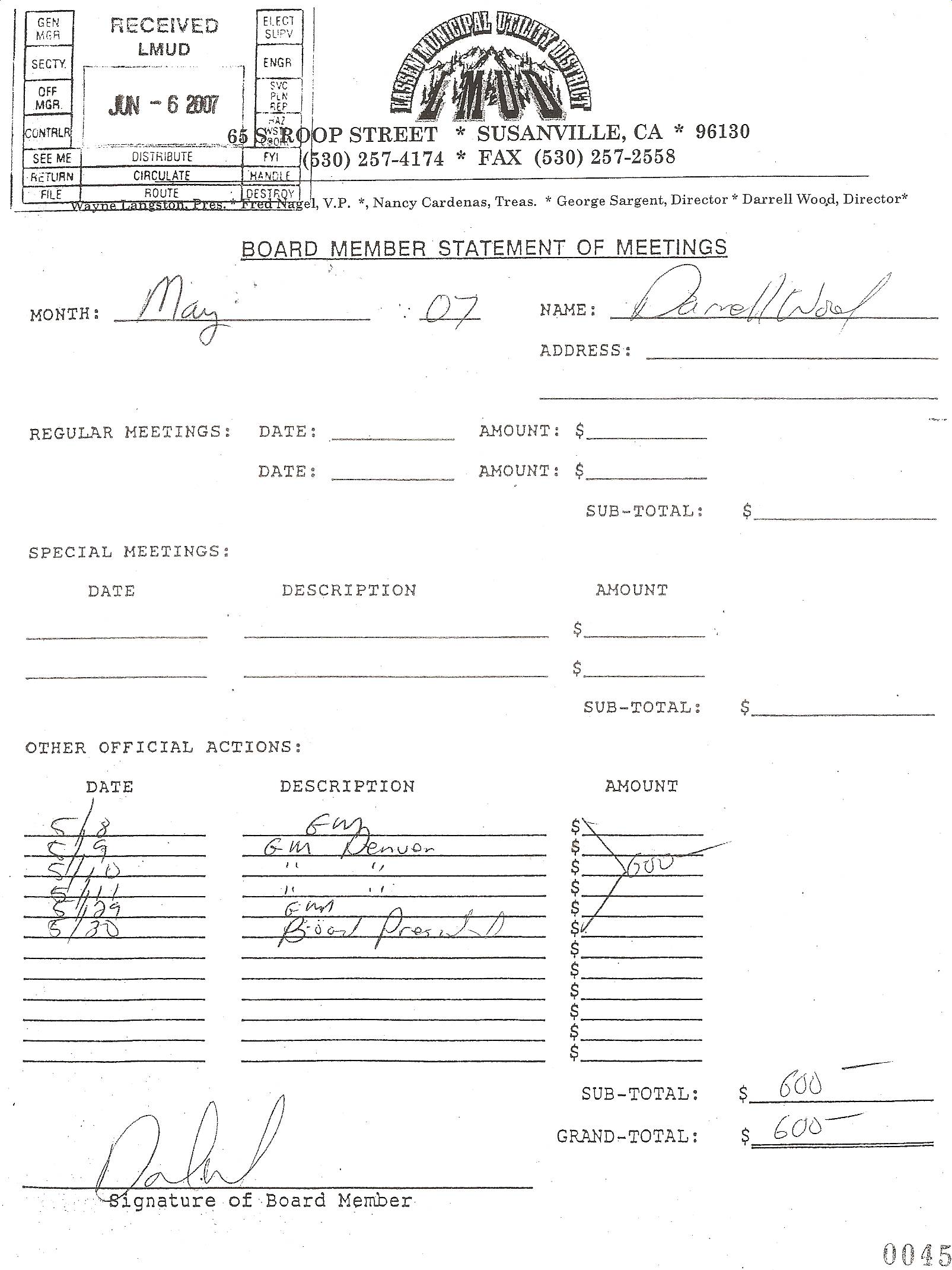 Darrell Wood states he met with Wayne Langston on 5/30/06, but Langston met with the GM and the Invenergy company (Wind generation) on 5/30/06