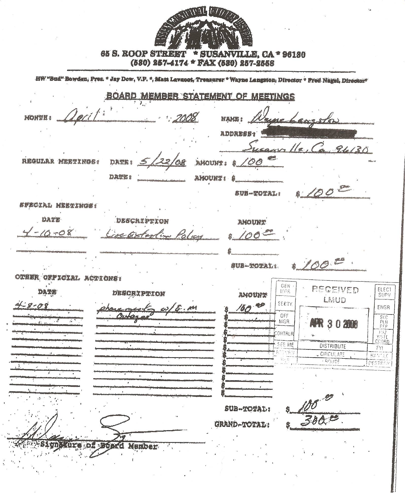 Wayne Langston voted no. Langston is the only seated member of this board that has never been on any LMUD ballot. Cady and then County Clerk Theresa Nagel placed Langston (a PSREC utility ratepayer at the time of his appointment and the County Clerk's son-in-law) on the LMUD Board when Michael Deal resigned. Langston only moved into a LMUD Ward after the next LMUD election. Langston did not appear on the next LMUD ballot. No LMUD ratepayer has ever cast a vote for Wayne Langston.