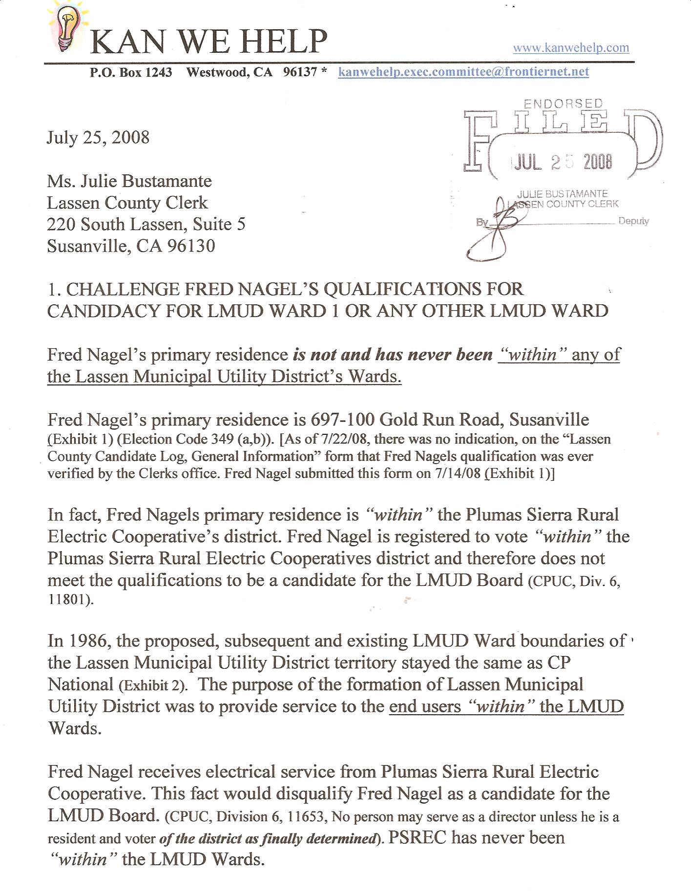 KWH submitted a written protest, to LMUD, that this policy violated the law. This protest fell on deaf ears