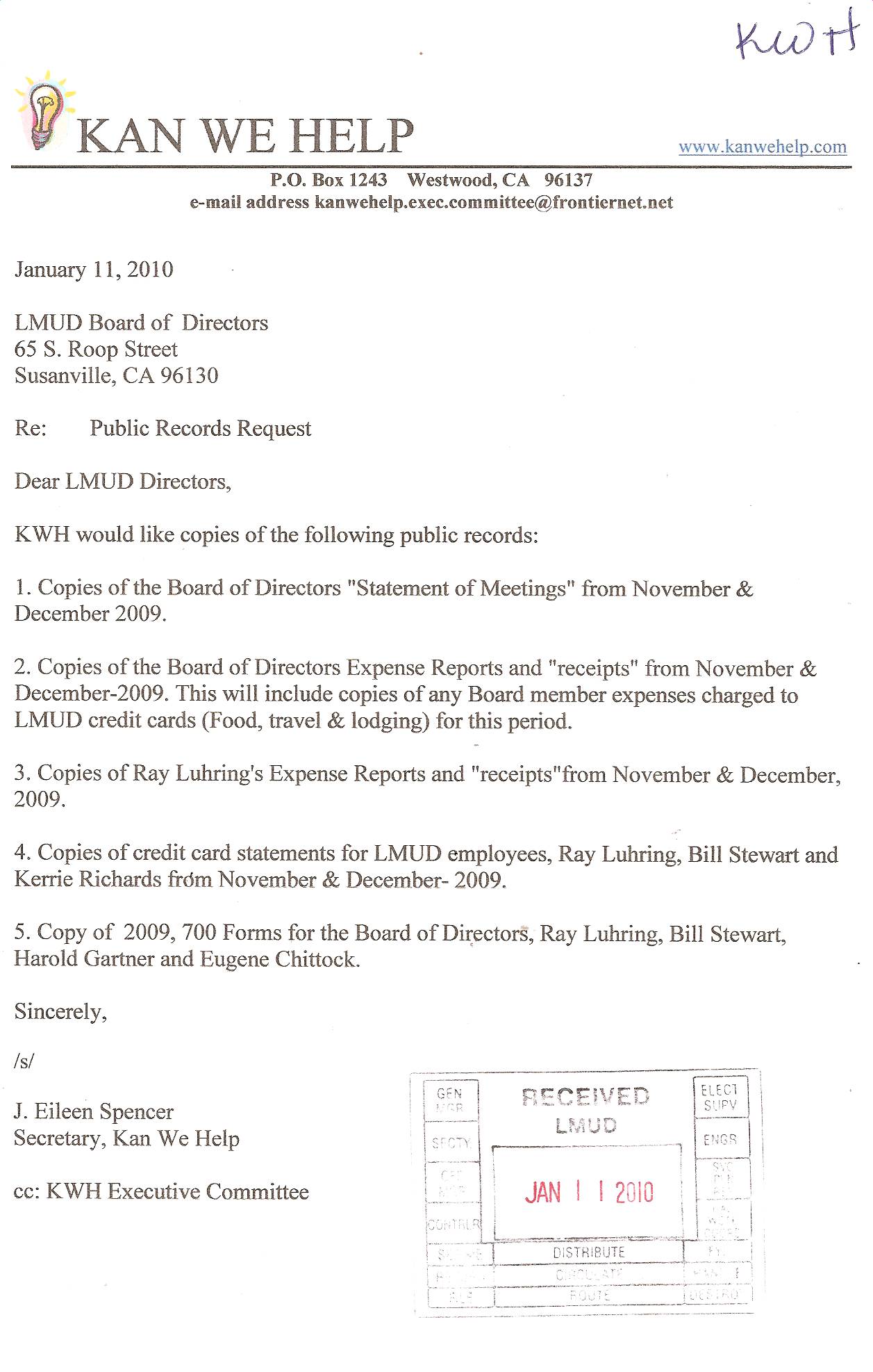 Lassen Municipal Utility District writes a $30,000 check to PGE for a "study" and claims that it is not in their possession. History has indicated that these LMUD studies never existed or the money spent was on something other than a "study". We anticipated that LMUD would refuse to release the alleged PGE "Study". Now we will find out what the $30,000 was for.