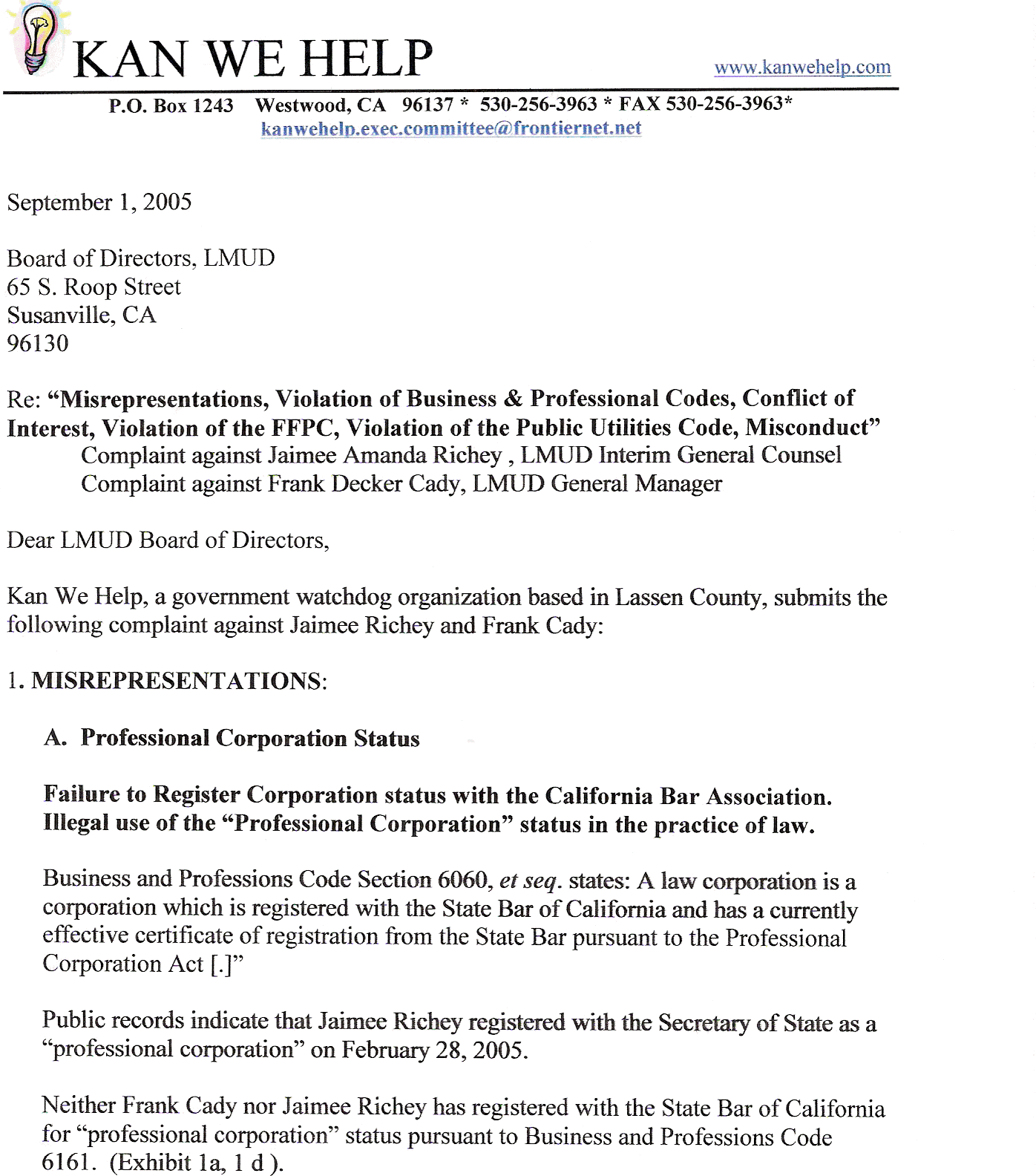 Kan We Help Files Brown Act Violation Against LMUD