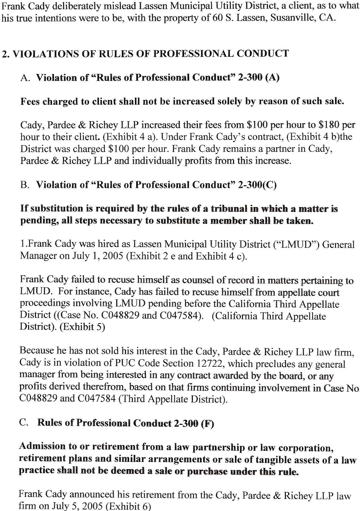 Instead of working with these two companies, the Lassen Municipal Utility District Board has been advised by Eugene Chittock to ignore the existing agreements with Sierra Pacific and Honey Lake Power and attempting to extort more money from these companies.