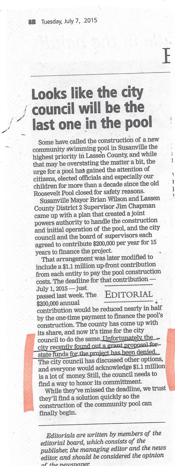 Brian Dahle was Supervisor of District 4 in 2010. $250,000 was placed in the 2010/2011 Budget for his Bieber Park.