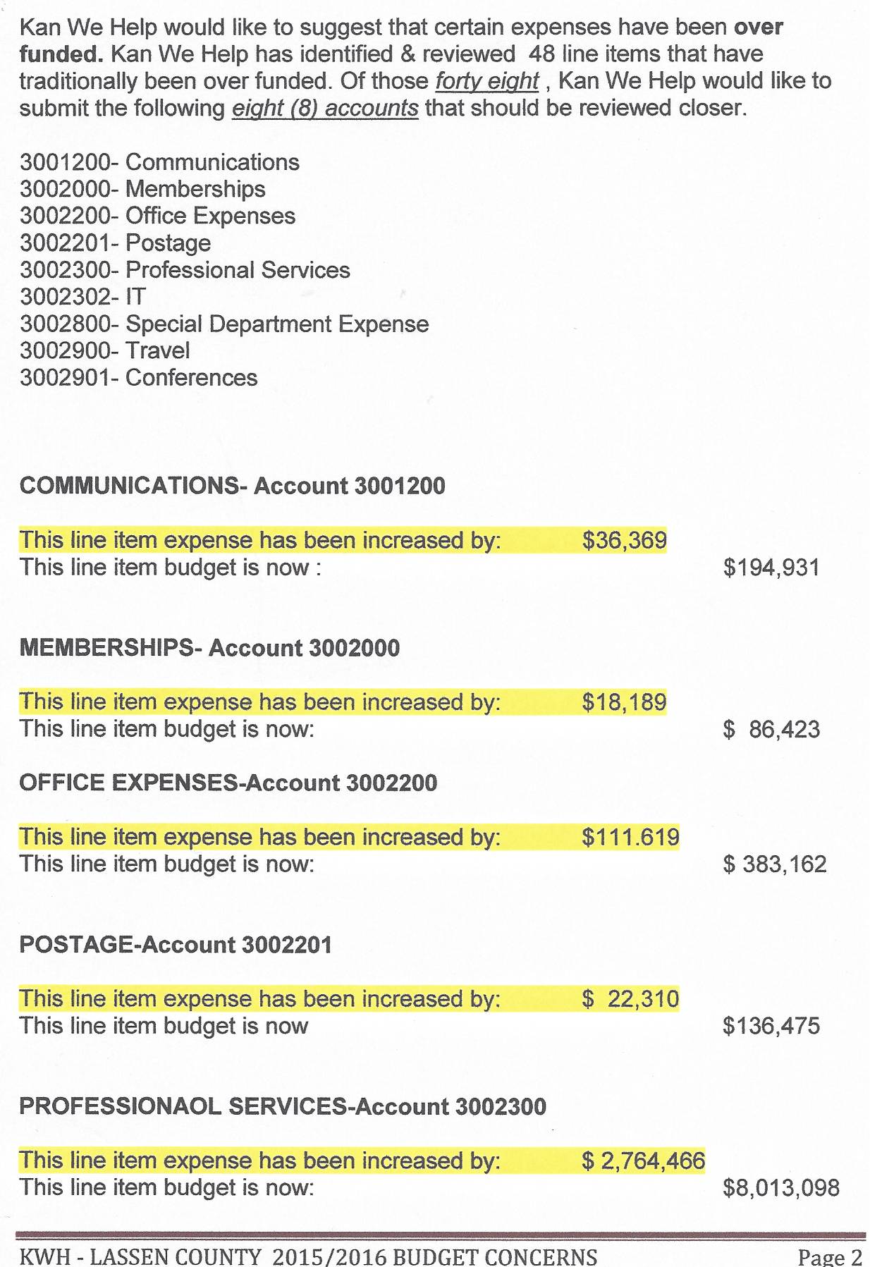 1. The Clerk of the Board is a statutory position and was deliberately omitted by County Counsel. The County Clerk has failed to be competent in this position. Kan We Help suggested moving the "Clerk of the Board" position back directly under the Supervisors authority and supervised by the CAO. Government Code 25100 allows for this change. This position has been budgeted so there would be a negative impact on the budget.