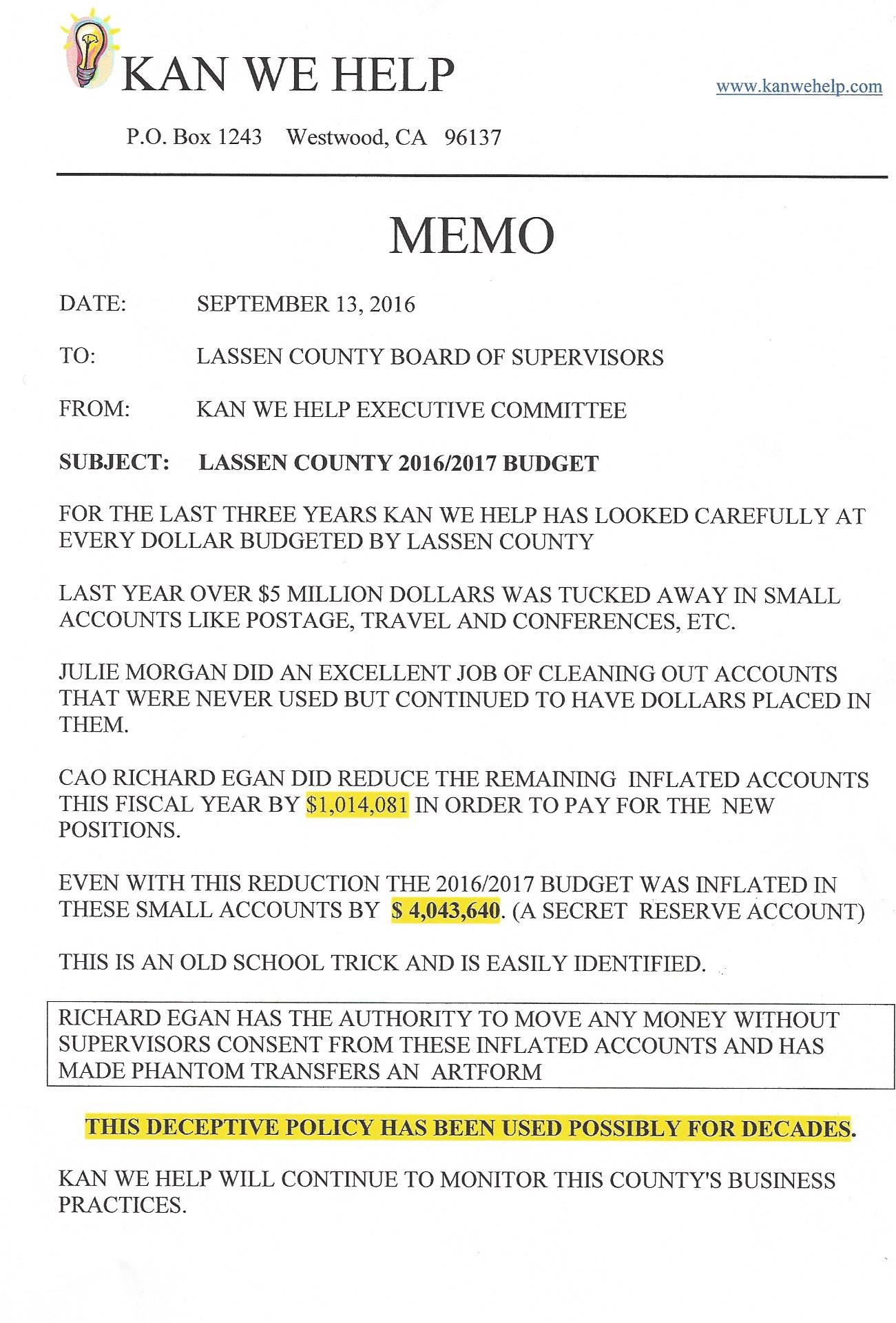 WHAT LASSEN COUNTY TAXPAYERS BOUGHT FOR THE