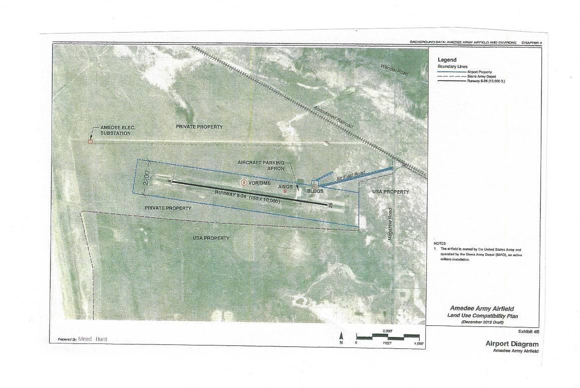Lassen County Owns the Amedee Army Airfield but the Army has a 50 year lease with an option to an additional 50 years. The US Army TACOM, in Warren, Michigan, decides who lands at this Airfield not the Sierra Army Depot Commander.