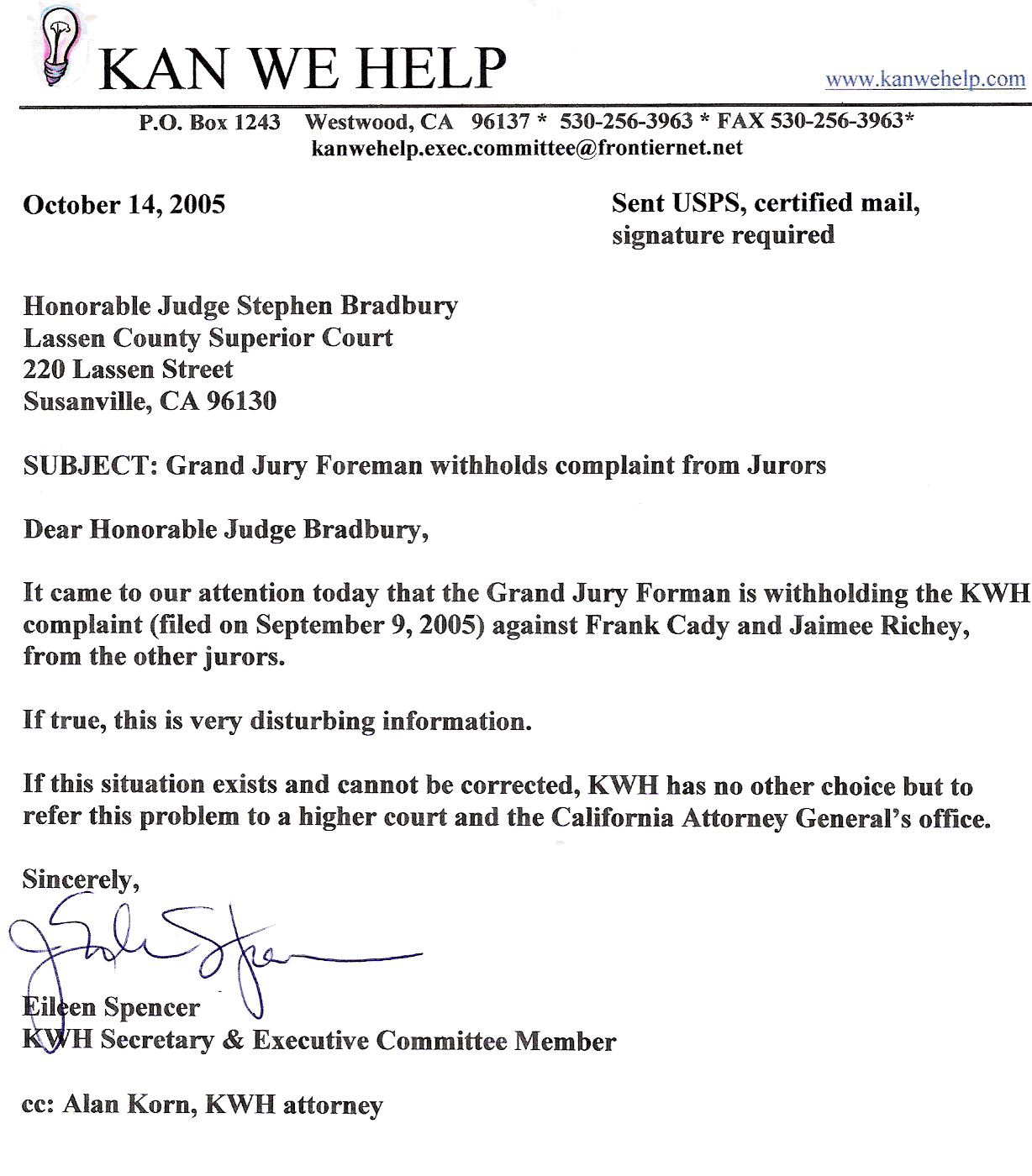 Judge Stephen Bradbury insured that any LMUD issues brought before the Lassen County Grand Jury would be quashed. He put Jaimee Richey on the Grand Jury...this is not the first time Bradbury has done this for LMUD and his once business BKC partner, Frank Cady.