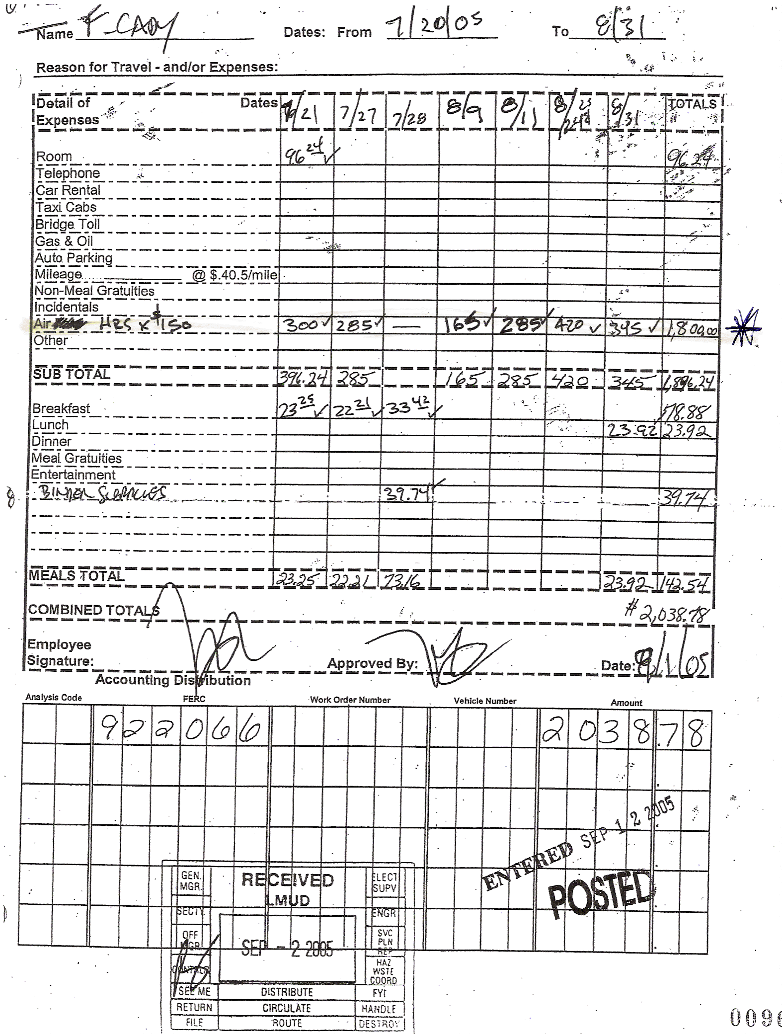 FRANK CADY CLAIMS NO EXPENSES IN DECEMBER 2005? No.....he's just turning them in much later.