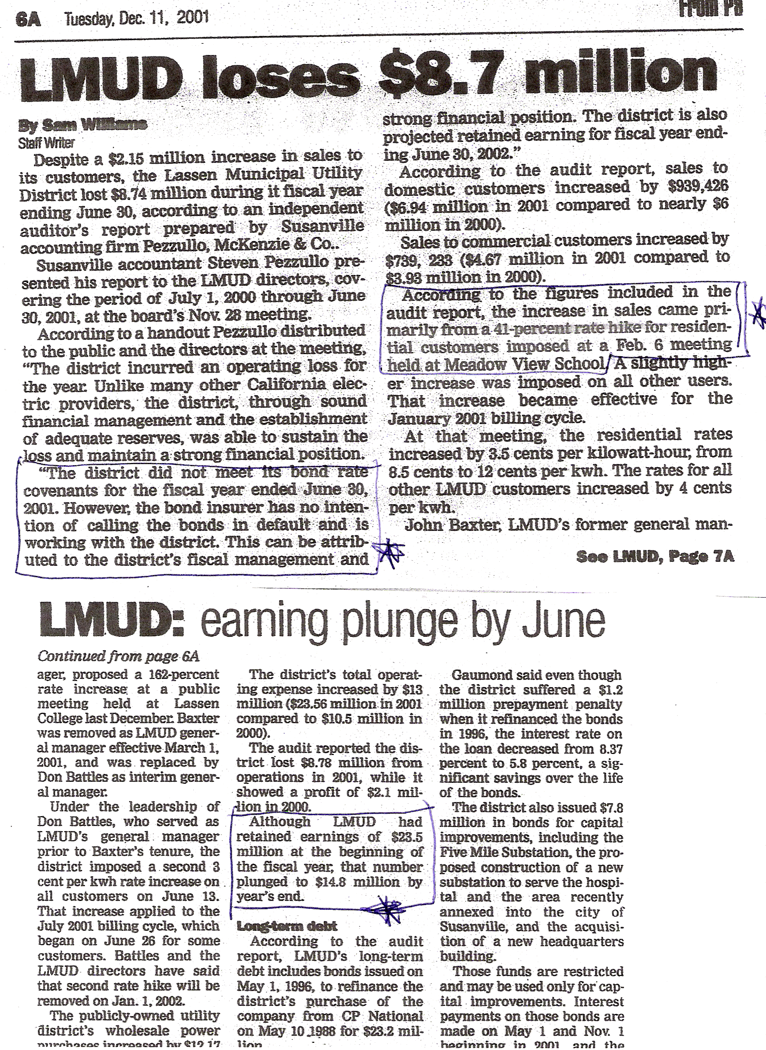 LMUD signed the Memorandum of Understanding with the Boise irrigators in August of 2001. This obligation was for in excess of $100 million dollars. The LMUD ratepayers were never told about the MOU or what it contained until KWH was able to obtain a copy of the MOU