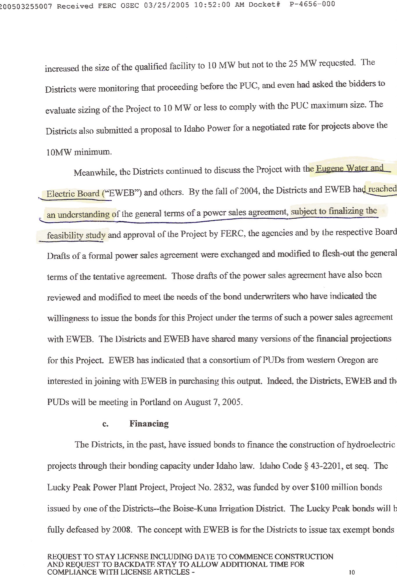 The HPB feasibility study was completed prior to October of 2001. The Boise irrigators deleted the date of the report to deceive FERC. RW Beck was hired by LMUD to analyze the HPB study and this report was completed in October 2001. The LMUD lied to the ratepayers.