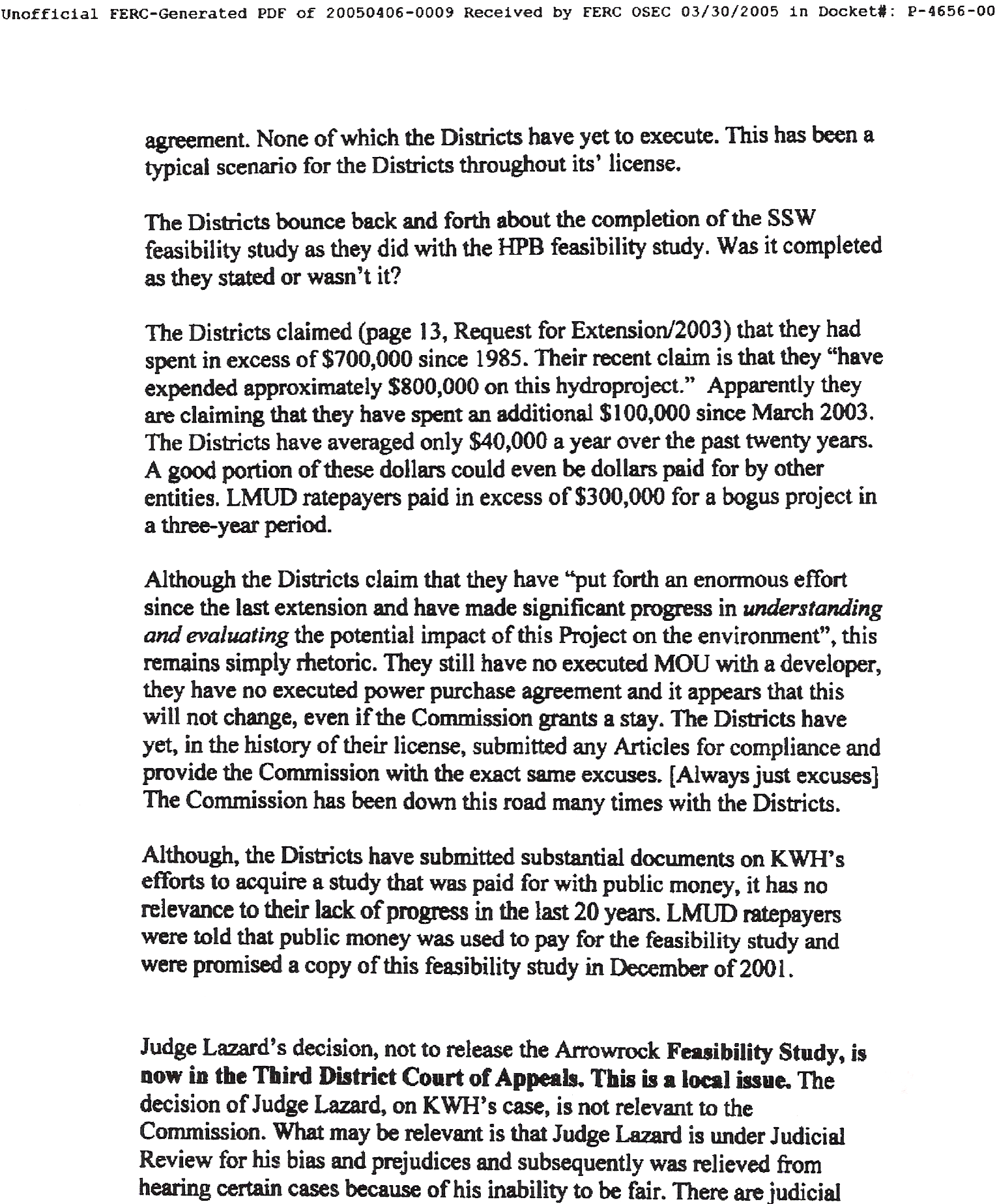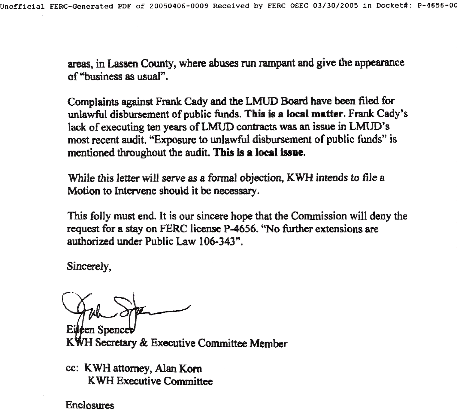 KWH FILES OBJECTION WITH FERC