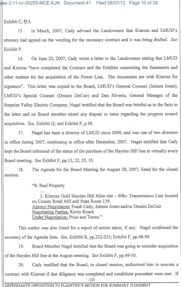 Kinross Opposition to LMUD Summary Judgment