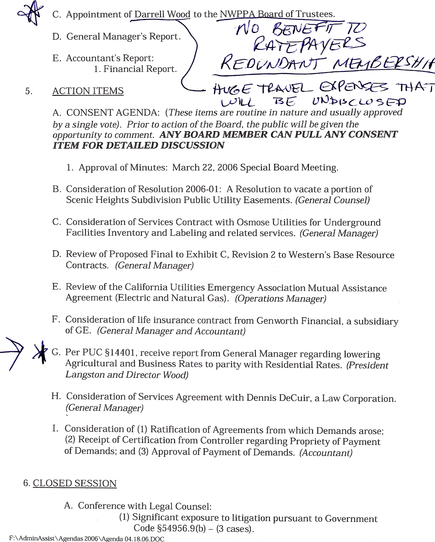 As of 5:30 PM on March 6, 2006, no public notice was posted at the LMUD office. This is a direct violation of the Brown Act. LMUD cannot hold the meeting on 3/7/06