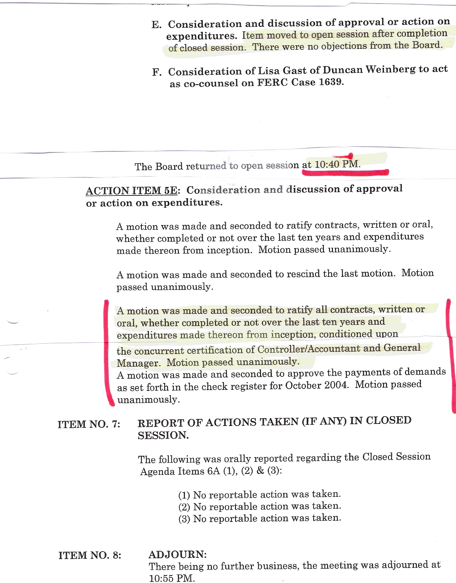 Frank Cady asked the Board to move this item to the end of the meeting so the public would not be able to object (10:40 PM)