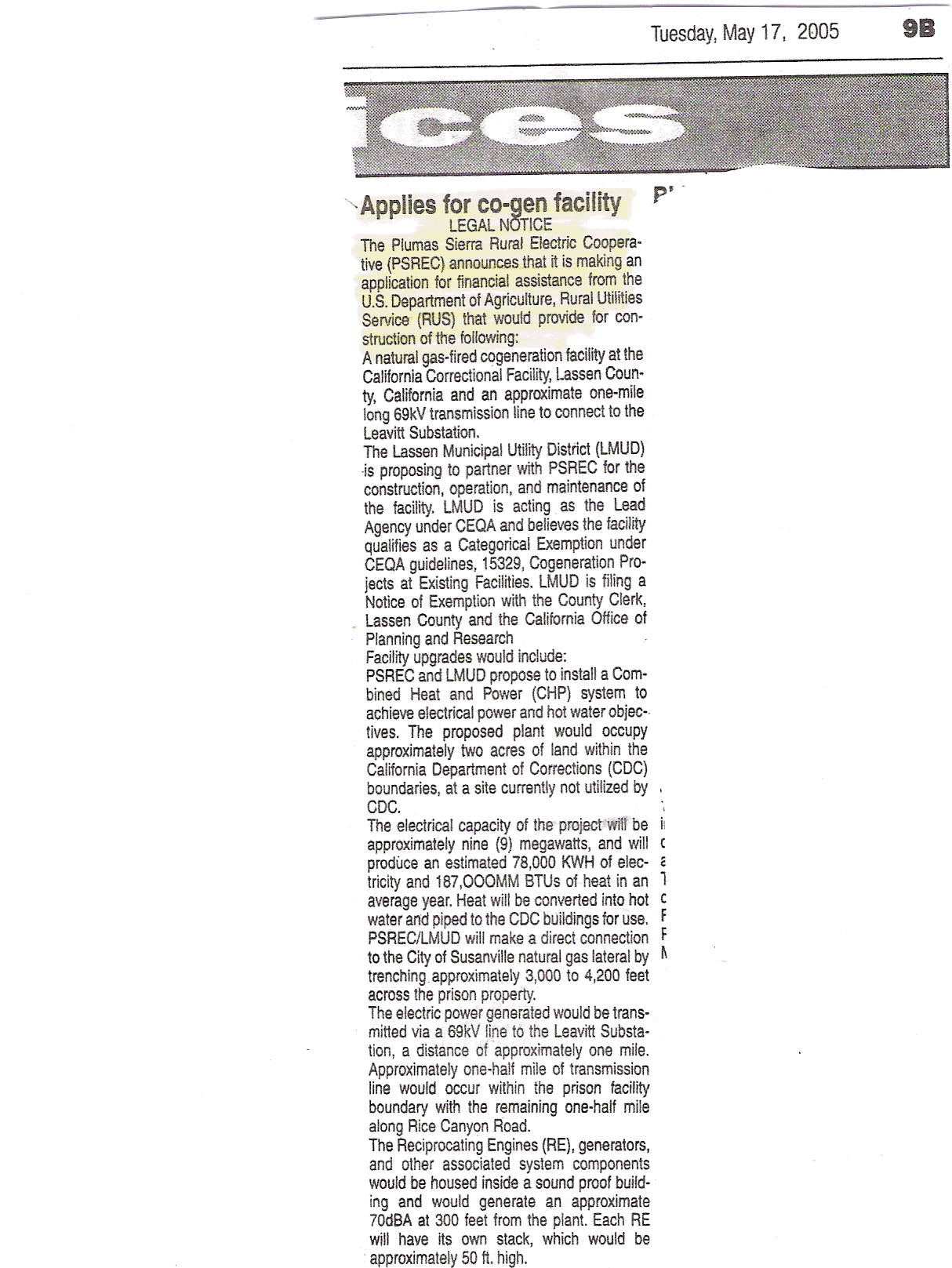 May/2005: Curtis Anderson, RUS, states that no application has been received. He said that he was aware that LMUD was still in the "study" phase of this project.