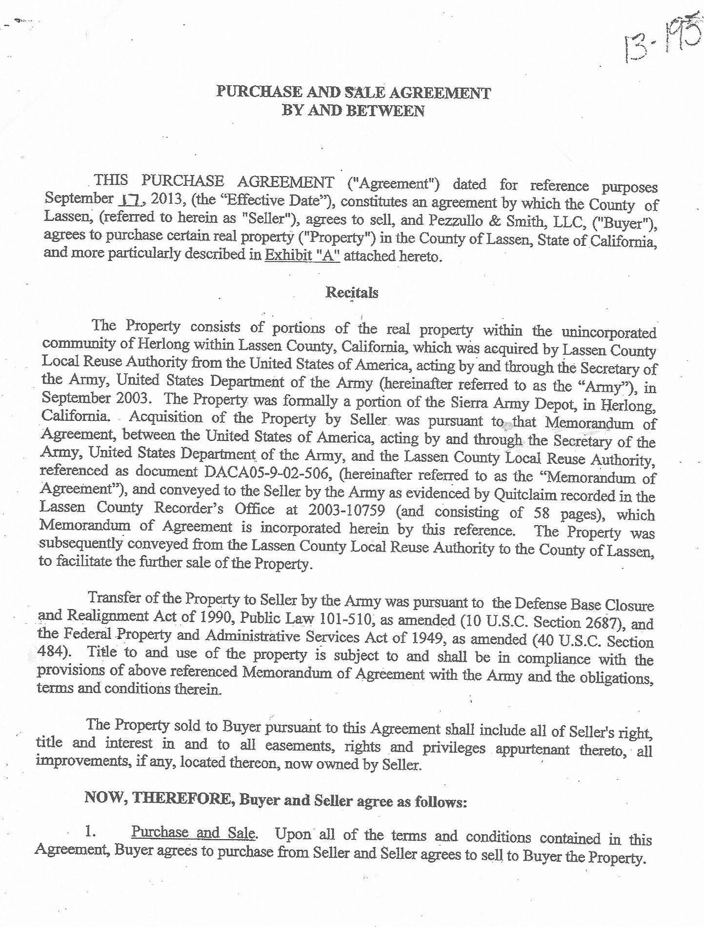 Purchase and Sale Agreement