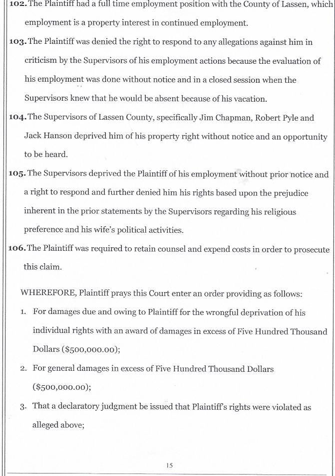 Tom Stone v Lassen County Supervisors Chapman, Pyle, Hanson