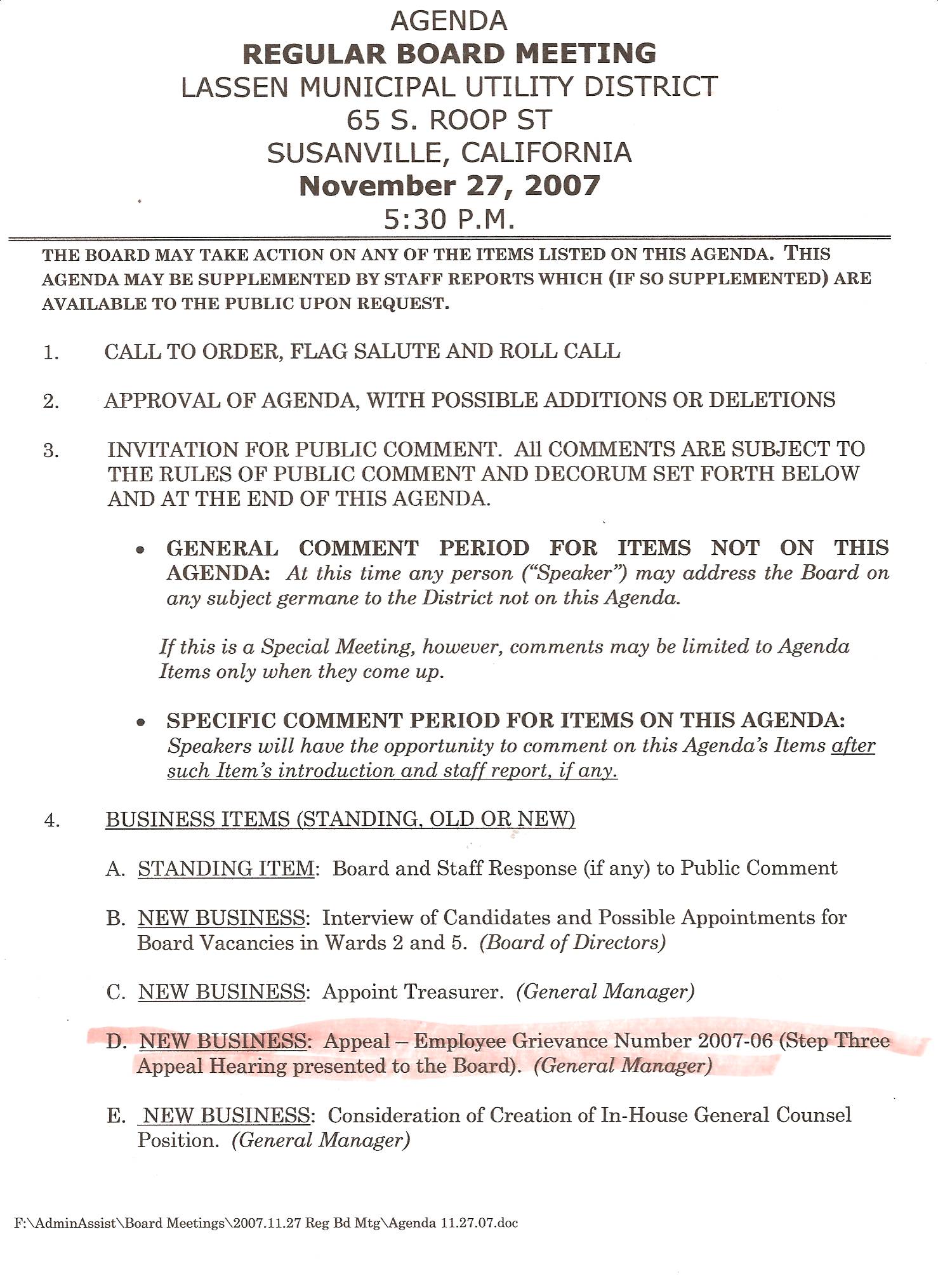 This iIlegal agenda approved by LMUD attorney Jaimee Richey-Jones