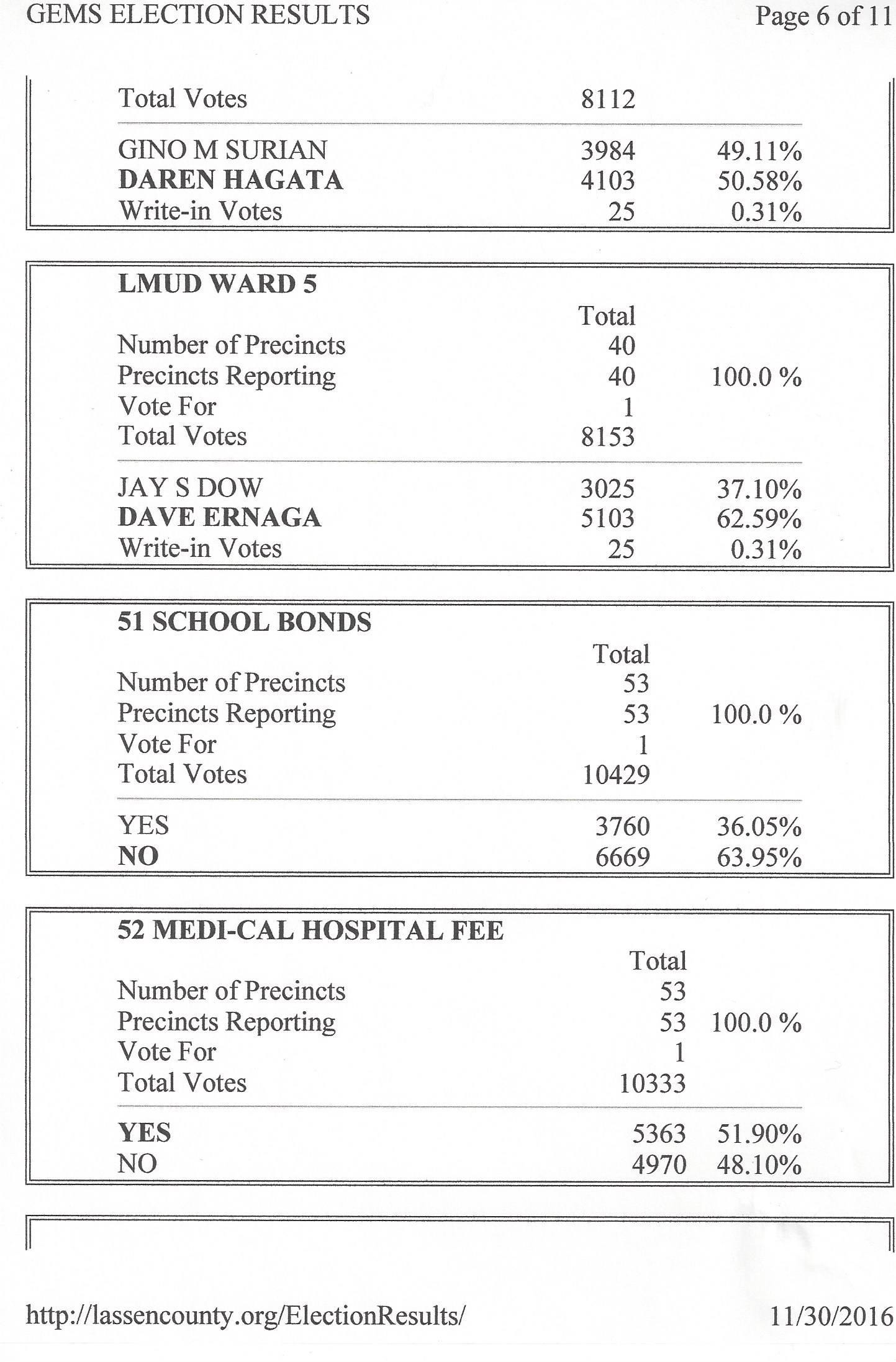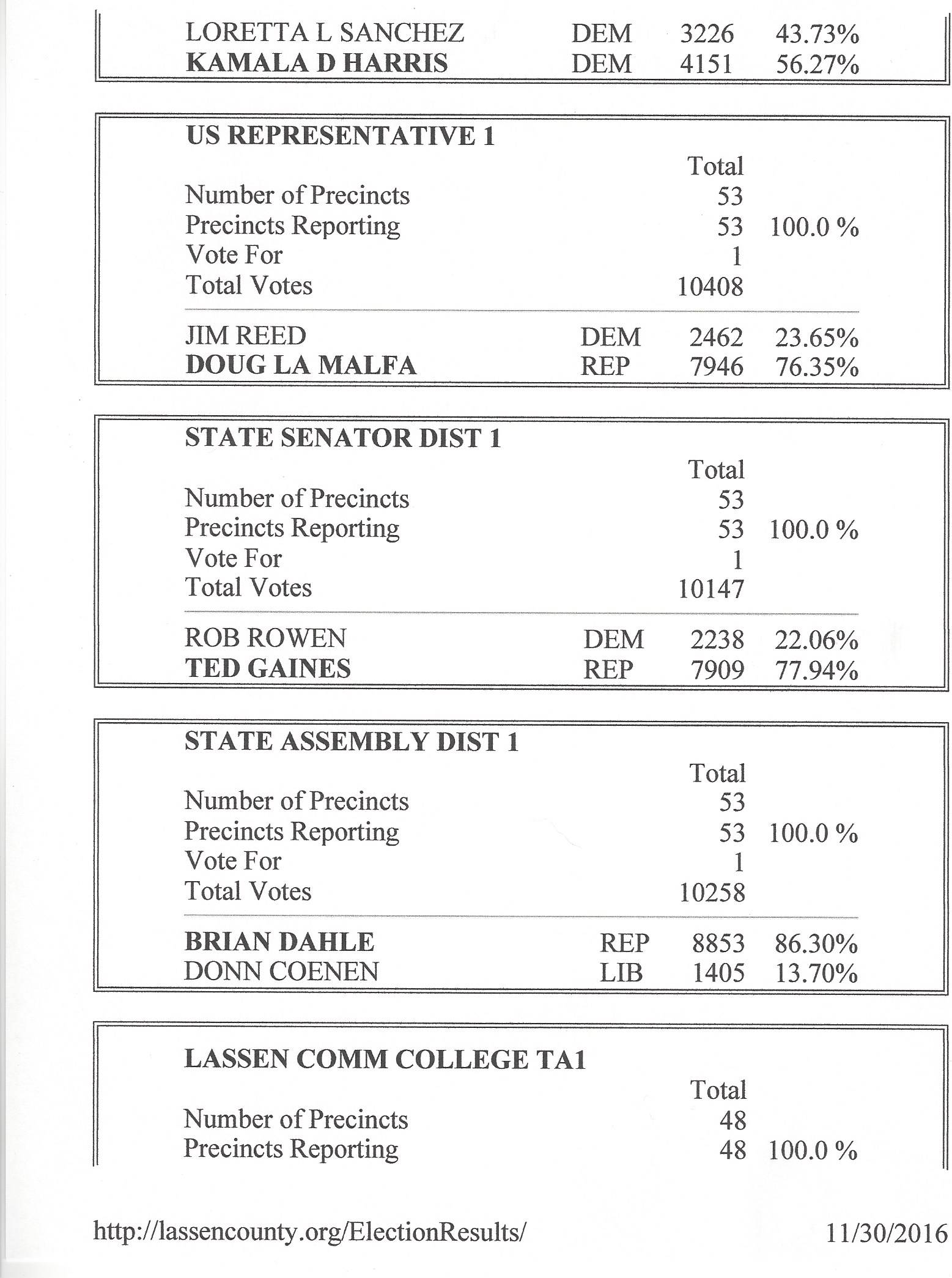 LASSEN COUNTY JUNE 7, 2016 ELECTION